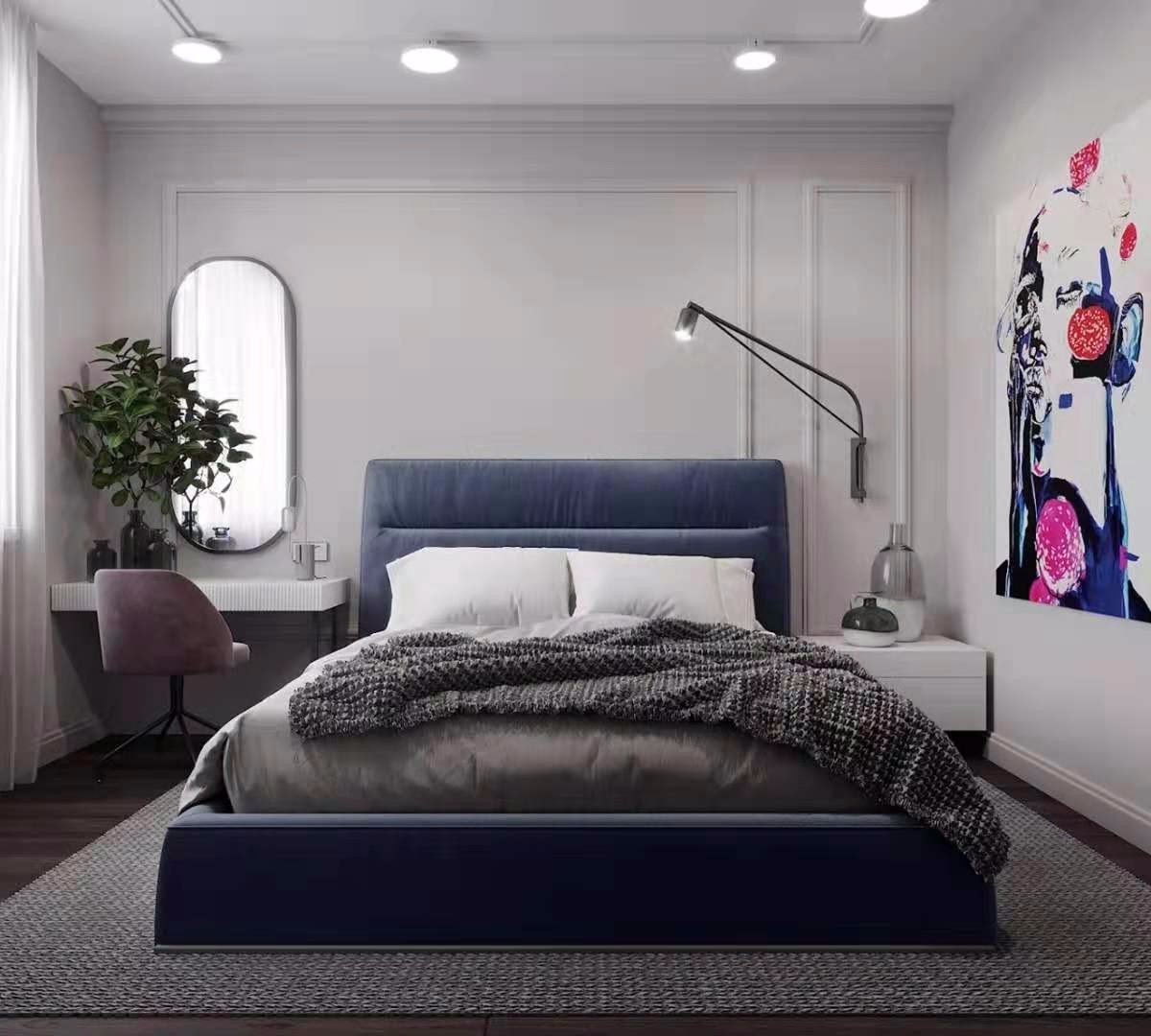 床頭燈的設(shè)計(jì)采用壁燈,不占據(jù)任何位置