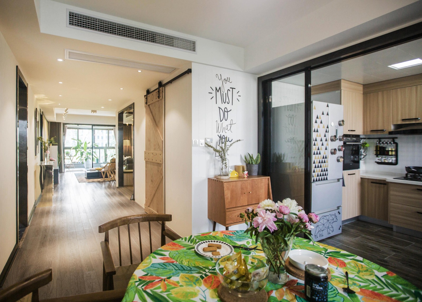 客廳后面是敞開式書房,出挑的黃色沙發(fā)為空間帶來一抹亮色,綠色和黃色的組合搭配自然又不乏暖意,墻面的大紅色裝飾畫點(diǎn)綴在視覺上也更有層次感,閑暇時(shí)余躺在沙發(fā)上看書,或是發(fā)呆。文藝到骨子里。