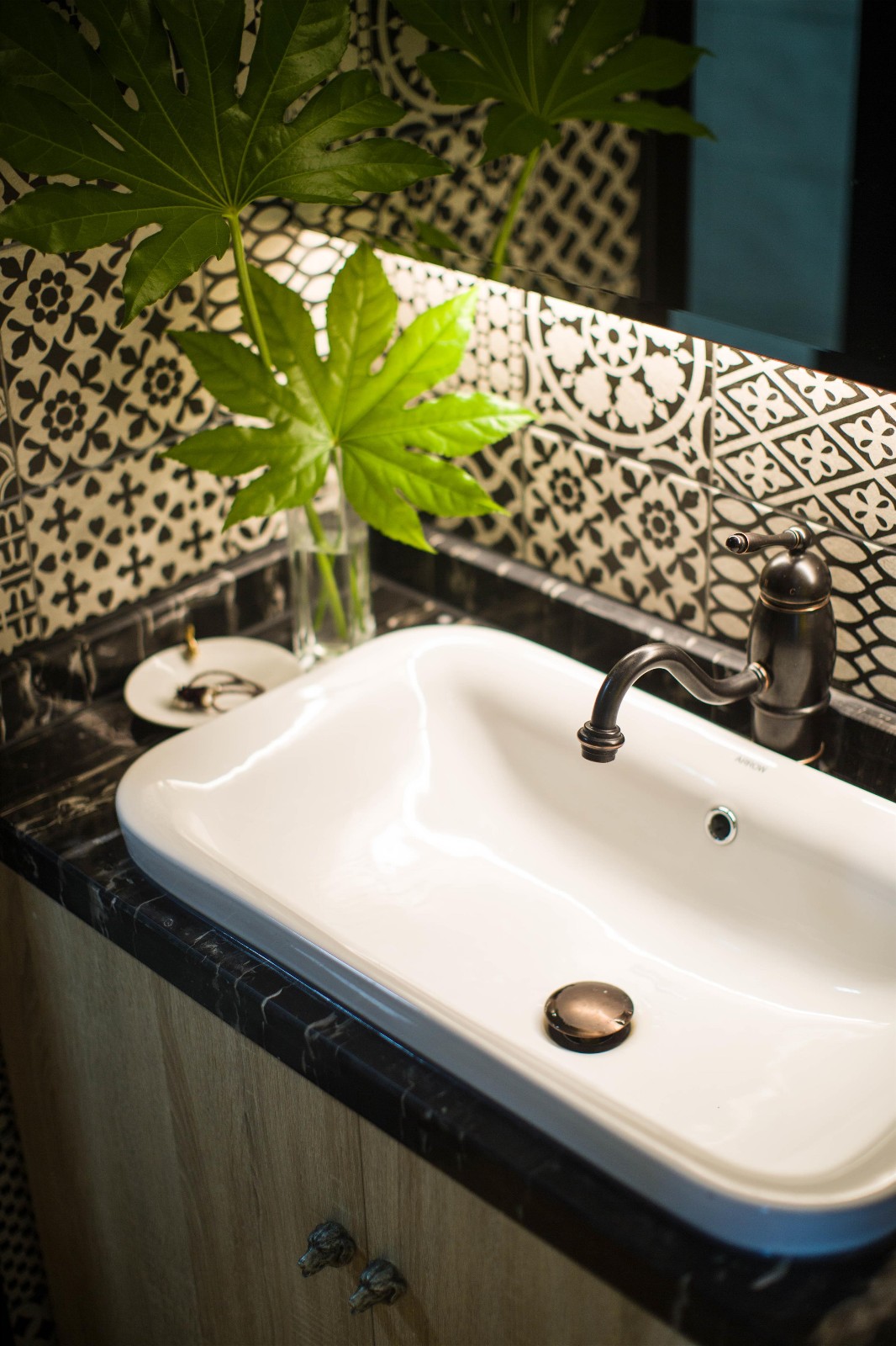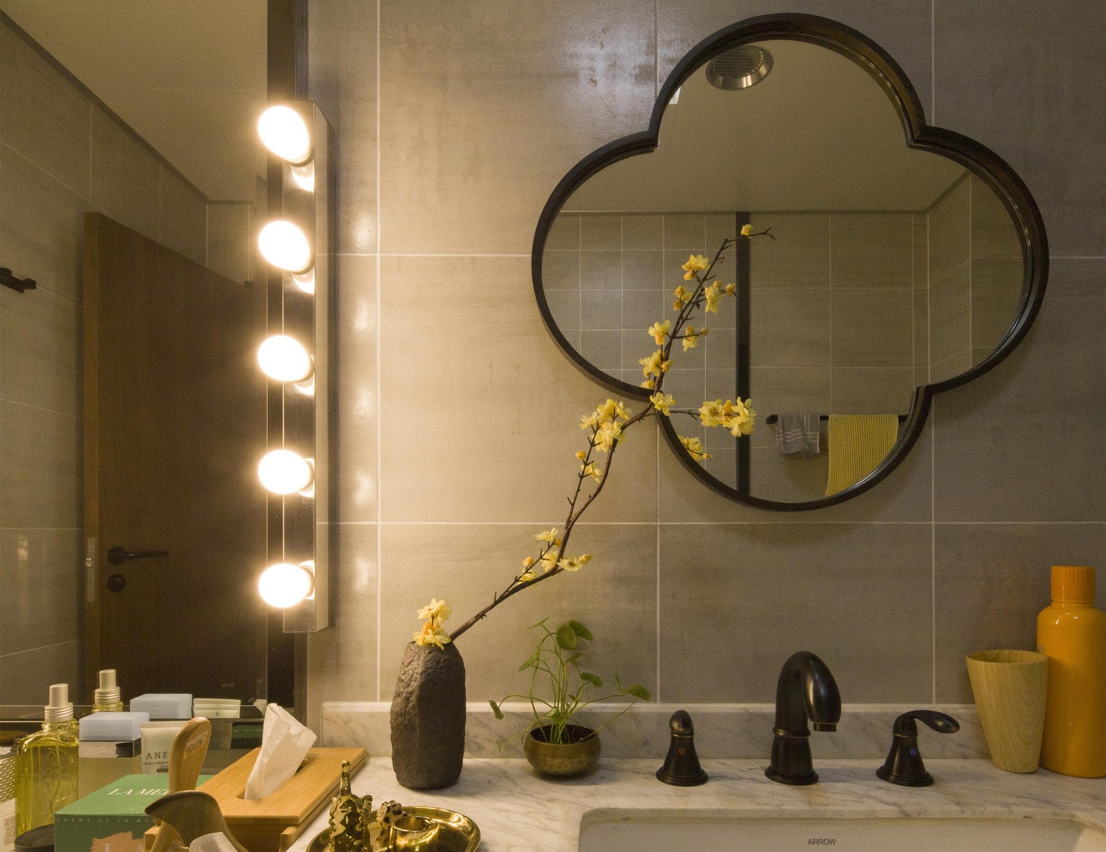 衛(wèi)生間在花團(tuán)簇?fù)硐?,卸去一天工作的疲憊,也是對美好事物的心靈對話。