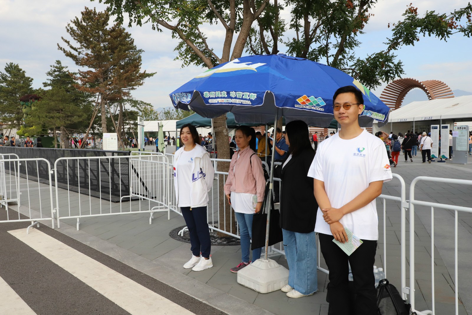 迎著晨光出發,踏著晚霞返程。志愿者們在3大區域10余個崗位悉心服務,承擔站點服務、游客引導等相關工作。在強日曬環境下,每位志愿者平均服務時間近5個小時。