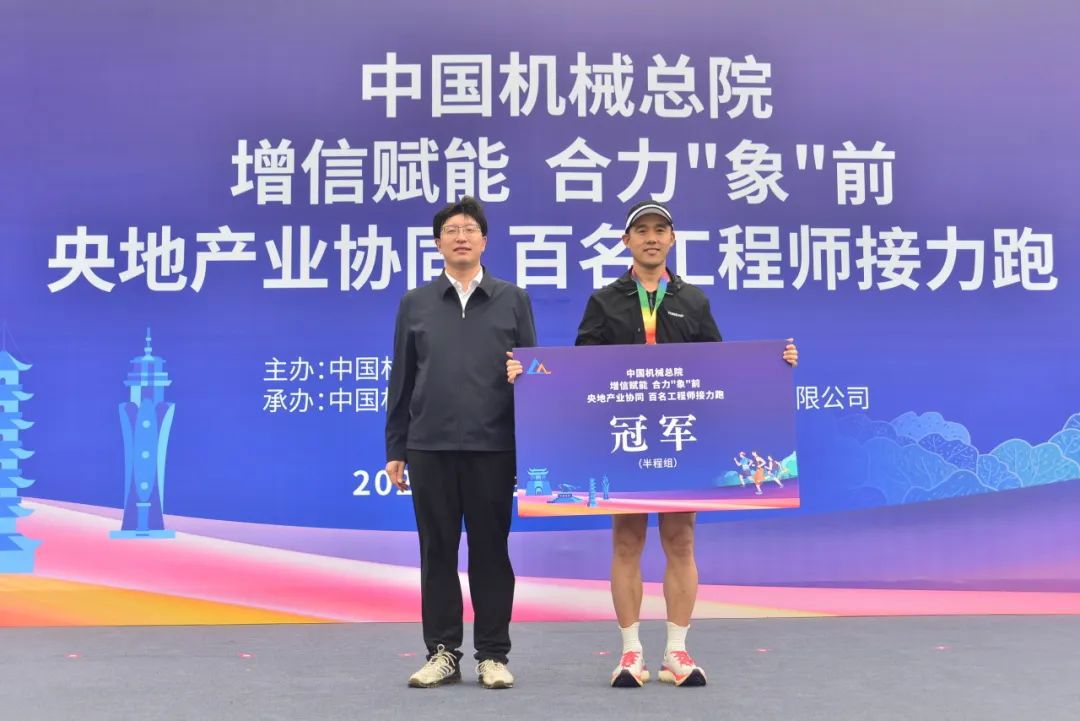 揮灑汗水,鑄就輝煌。經(jīng)過激烈角逐,第12組“混編戰(zhàn)隊”獲接力跑團體第一名;機科股份李紅彬、寧波全力模具葉愛紅分別獲得半程馬拉松男子組、女子組冠軍。